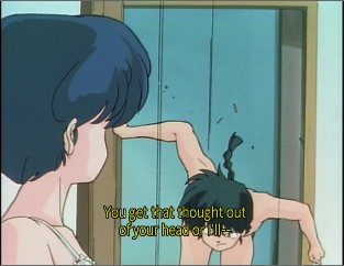 Ranma busting through the door.