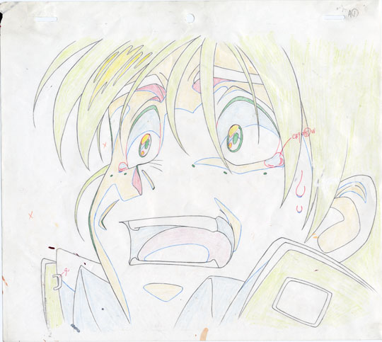 Tsutomu is frightened as he is being held by Geega against a girder on a skyscaper under construction.
