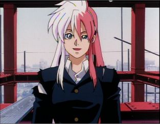 Birdy has just defeated Geega in a fight on the steel superstructure of a building under construction. Birdy is wearing Tsutomu's school uniform.