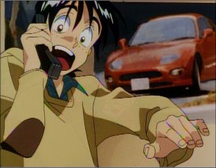 Tsutomu reacting as his phone call is answered by Natsumi.