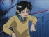 Tsutomu leaning back against the fence within the amusement park after changing back from Birdy.