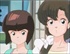 Nabiki and Kasumi staring at Akane who is holding a table in the air, upset at just finding a naked male Ranma taking a bath.