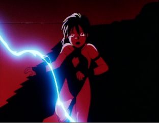 In this flashback, young Birdy, searching for Viodine, has just come upon a large robot and is starting to back away from it as lightening flashes about.