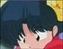 Face of Akane as she is being lifted into the air by Ranma as they attack Asuza & Mikado in the ice skating rink.