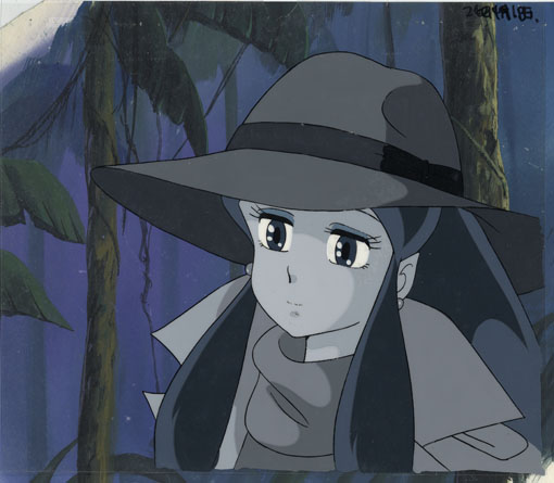 Quiet, introspective images of Lum are very appealing to me. This cel came with an irregularly cut jungle background. The background gives the cel a dark, more whistful tone.