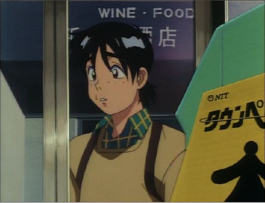 Tsutomu is standing puzzled after Natsumi has just told him to meet her later to discuss what she saw the previous evening.
