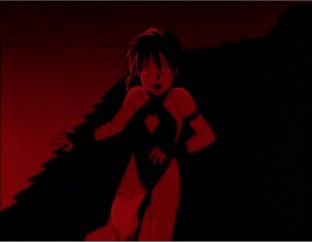 In this flashback, young Birdy, searching for Viodine, has just come upon a large robot and is starting to back away from it as lightening flashes about.