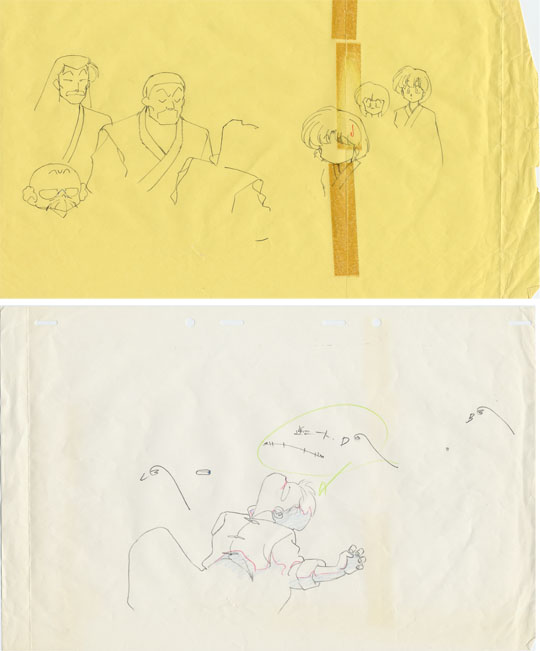Below: Rough & Genga and Screen captures from start and end of the pan
