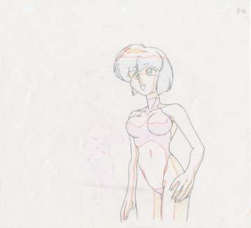 A copy background of blue sky with clouds came with this cel, which was marked 138 C21+23.