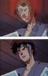 Kuno is enlisted help in deciding who he should marry. He is holding pictures of Ranma-chan and Akane, although the images within the pictures are not visible.