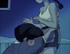 In the dark in Akane's bedroom, Akane is on her knees pleading for Ranma, currently in his female form, to return to his old "male" way of thinking and acting.