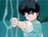 Ranma is practicing his martial arts moves along the sea shore.