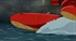 This is all a single cel layer. As one examines each frame in the sequence, the wave and waters droplets change with each frame as well as Fio's hair. It is amazing that each cel in the sequence would have the aircraft redrawn with the varying wave and water droplets in different positions.