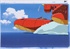 I purchased this cel at Anime Central 2009 from Art-Toons. It was displayed hung on a wall at their booth, and it immediately caught my eye. The cel has sense of movement of the orange aircraft rising from the water. I think the individual spray of water droplets does much to enhance the feel of motion. I find that I don't care much for color copy backgrounds that many vendors are now supplying with cels and I'm even less thrilled with non-matching color copy backgrounds. However, in this case, I must admit that the color copy background (please click on the first thumbnail below to view the cel with the color copy background) did enhance the overall image.