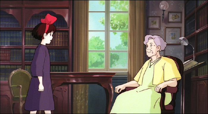 Kiki is walking into the room where Madame is sitting.