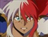 Birdy is reaching out, grabbing Tsutomu as he falls onto Birdy after having been thrown by Geega.