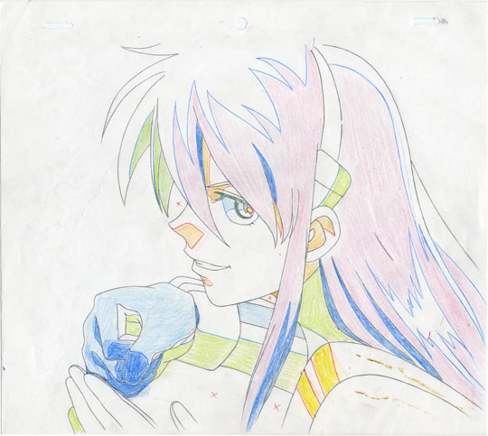 Birdy is reacting with obvious relish at the thought of the pulverizing that she is about to inflict on the two Arkezoid robots that have chased after her.