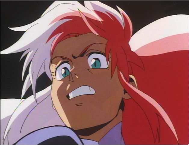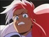 This is the final frame as Birdy descends on the human turned monster during the fight scene that starts in the aquarium area of a building. Birdy will impact the man's force shield and be thrown back. As the screen capture shows, the background is all black, which yields a pretty dramatic image.
