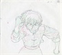 The dark area on Ranma outlines the area of Ranma protected from a bomb blast by Ranma holding Happosai up between himself and the bomb.