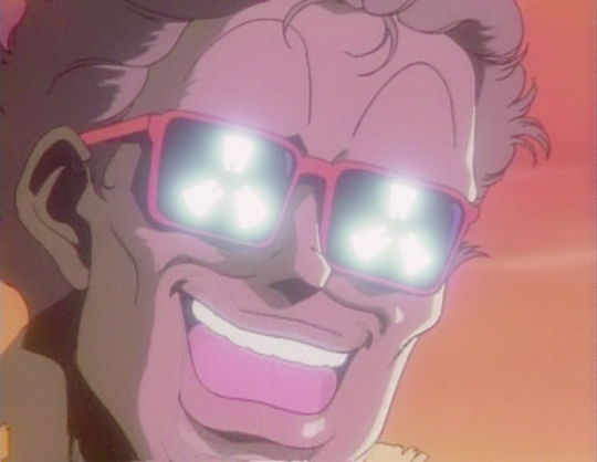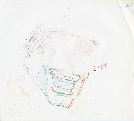 Kodachi Kuno is is holding out a lute that Principal kuno sees. He acts, as seen in this cel, as if the lute is actually his broken ukulele that has just been crushed by a blast from Tatawaki Kuno's drum of destruction.