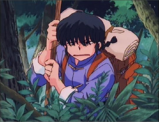 Ranma is struggling through a woods filled with large animals and traps in search of Akane. Here, in this cel, Ranma has come to a brief halt in high grass, saying to himself "Where is that stupid girl, anyway?".