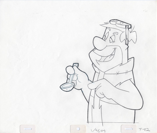The Van Eaton Galleries Certificate of Authenticity states that this is a pencil drawing of Fred Flintstone from a Cocoa Rockies commercial done by Renegade Animation. Cocoa Rockies is a Barney Rubble fake cereal that he tries to switch for Cocoa Pebbles Cereal in what is actually a commercial for Cocoa Pebbles.