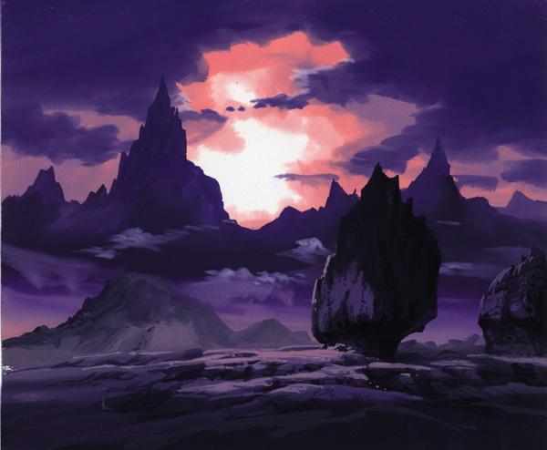 This is a unique purchase from my perspective. I saw the cel on Mandarake and bought it exclusively because I found the eerie purplish background very appealing. The fact that it was a title cel also made it attractive, although I know very little about the series.