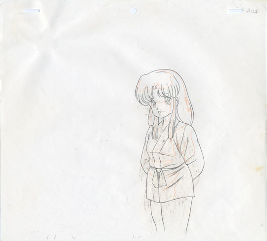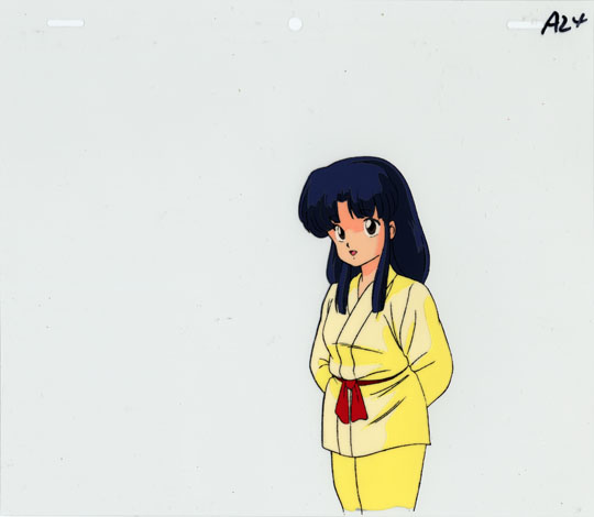 Akane and Ranma-chan have entered the Tendo Dojo. Here, Akane has stopped and turned to face Ranma-chan. Akane is suggesting that they engage in a little match just for fun.