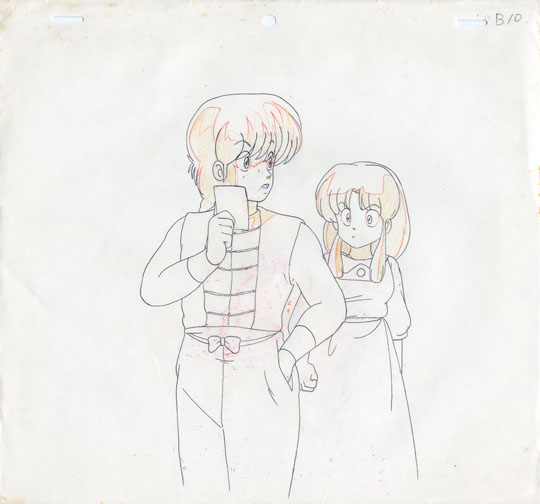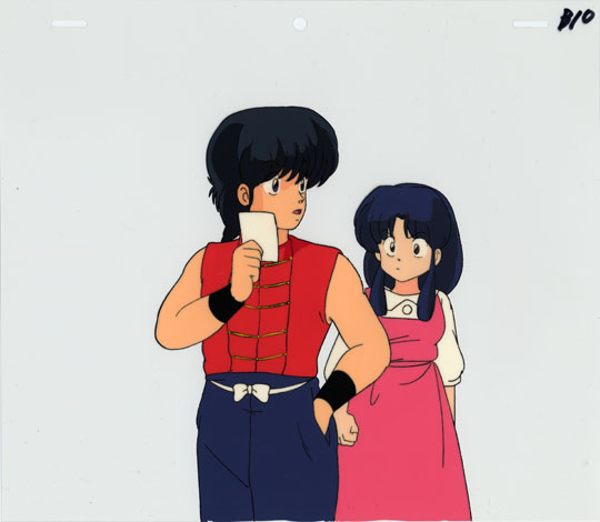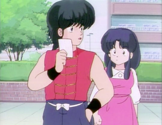 Ranma has just finished beating Kuno. Ranma is holding of photo of his female self, which he is just about to show to Akane, while he says "You had better start working on making yourself at least half as sexy as me." The result is predictable as Akane grabs Kuno's Kendo stick and proceeds to chase Ranma, trying to beat him down.