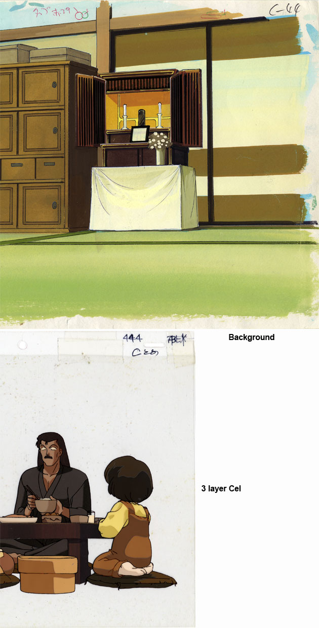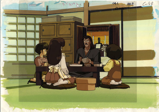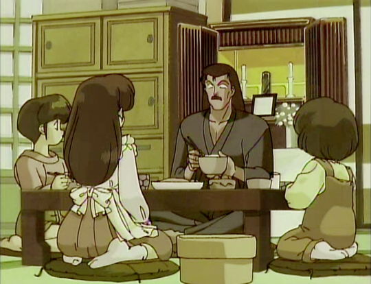 Akane has found her mother's old recipe book. Kasumi is holding it and reminising about the book and her experience learning to cook. This scene occurs as part of a flashback narrated by Kasumi as she recounts her trials and tribulations. Here, Soun is about to exclaim how wonderful Kasumi's cooking is, just like her mother's, as the Tendo girls have dinner with their father.
