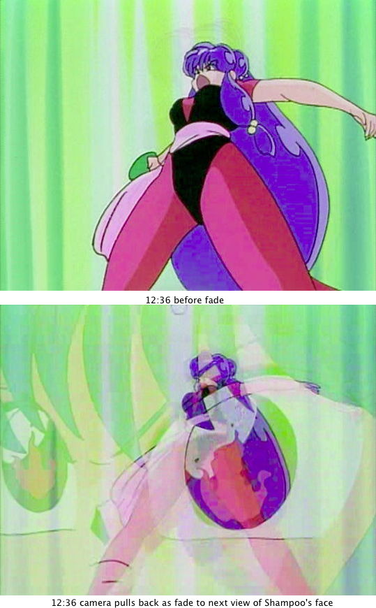 The screen capture below shows the cel of Shampoo as the camera pulls back, eventually showing the ball, and the scene fades to an image of Shampoo's face.