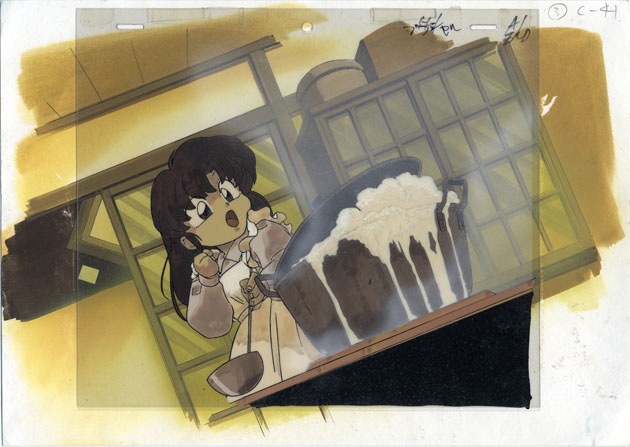 I scanned the cel layers themselves separate from the background to allow some aspects of the cel layers to be more readily viewed, especially the steam.