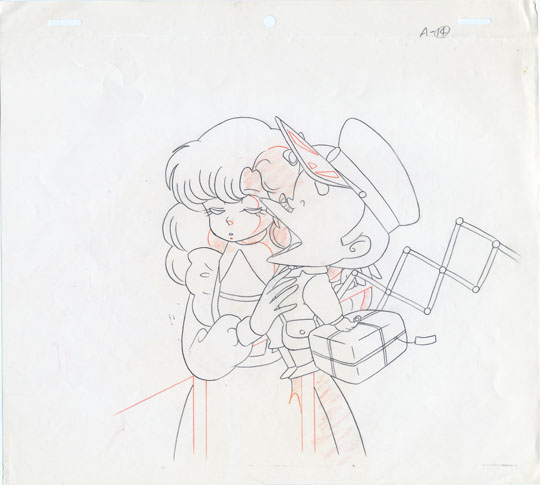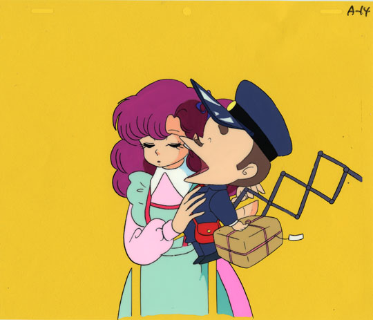 The vendor originally supplied the cel with a yellow sheet as a background. I scanned the cel with that background but decided I didn't like it as much as the white scanner lid background. The scan with the yellow background is below.
