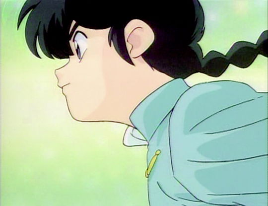 Ranma-chan skating along. After the manga-type images, the Ranma skating sequence is the first of a series of brief scenes that make up the opening.