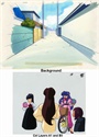 Below: Background & cel layers shown separately and Screen capture