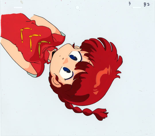 Ranma-chan is hanging down at a diagonal angle.