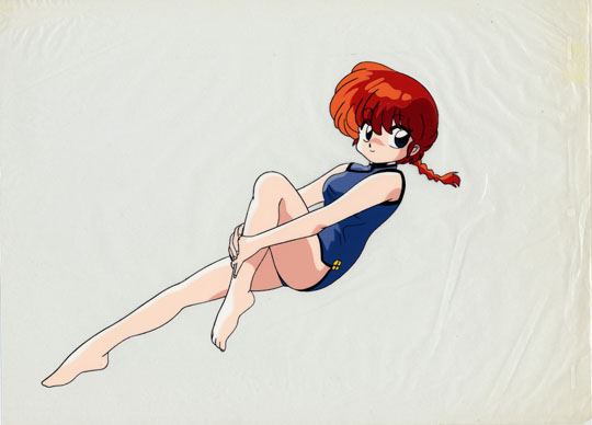 This image of Ranma-chan does not exactly match any of the three visible images that slide across the screen between 0:02 and 0:16 into the sixth opening sequence to Ranma 1/2. The three images all differ slightly from each other. This image differs from one of the three by only a slight difference in the end of the pigtail.