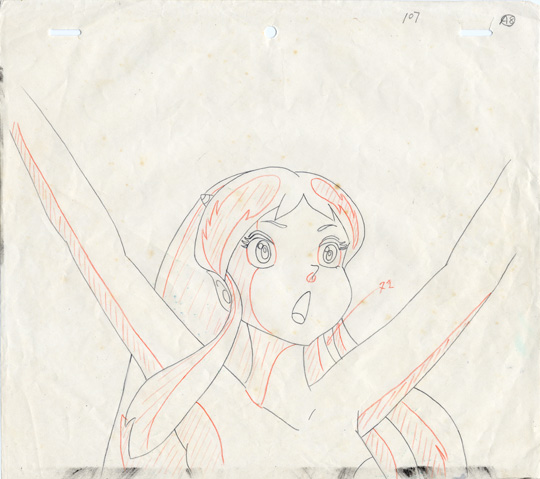 The cel, which is marked cut 109, does not match the screen capture. However, the douga, which is marked cut 107, does match. The cel has some hair where there should be open space for the background to show through.