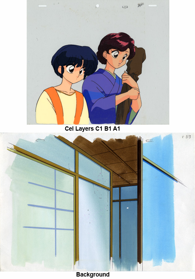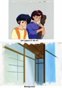 Below: Cel layers & background shown separately and Screen capture