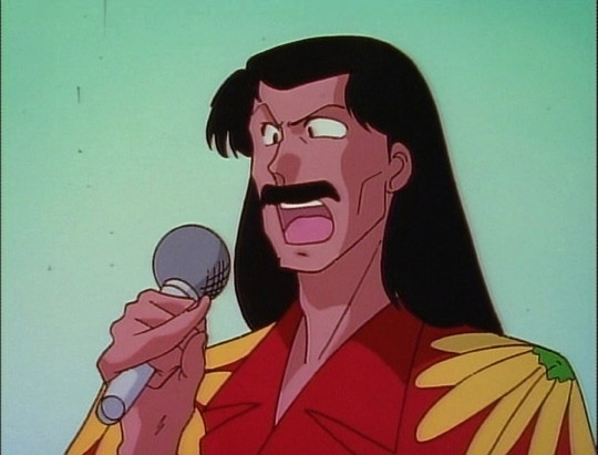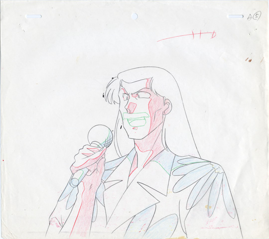 Soun appears on stage with a microphone announcing the girls singing contest. He is interrupted by Tsubasa Kurenai. He then resumes, announcing Tsubasa as the first singer. This cel layer combination appears in the scenes before and after the interruption.