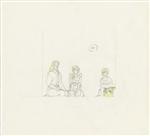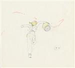 The cut starts with Genma throwing Ranma into the Tendo pond. Ranma-chan then runs back with a bucket of water and begins to throw the water on Genma. Soun, Kasumi, and Nabiki are seated at the table watching.