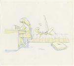 Nabiki laying on the bed exercising while Akane sits at her desk in her bedroom.
