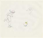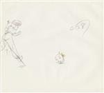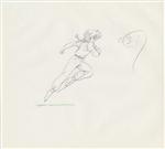 Kodachi has just attacked Akane in her bedroom and is about to hit her with a mallet when P-chan bursts through the door with Ranma in pursuit, smashing Kodachi behind the door. The sequence of genga covers Ranma's chase of P-chan back and forth across Akane's bed. In the video, genga C1 through C32 are repeated with C33 through C43 covering the final exit from the room.