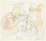 Nabiki is delivering a note from Kuno to Ranma as he stands on his head on the floor of the Tendo dojo.